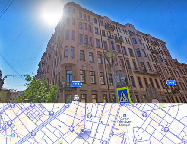 В Питере – просторная квартира на Большой Московской, 14/1, Центральный район города, шестиэтажное здание в стиле "модерн" середины XIX века постройки (по проекту архитектора Юргенса), известное как доходный дом купца Платицына. Семь минут ходьбы до Невского проспекта, пять до Лиговского, из окна виден собор Владимирской иконы Божией Матери, музей Арктики и Антарктики. Рукой подать до Дворцовой набережной.