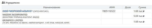 Это может показаться удивительным, но в собственниках этого ЗАО значились два офшора – NASDOR INCORPORATED (Лихтенштейн) и GRINSPICO LIMITED (Кипр). Причём с января 2022 года записи о них по какой-то причине удалены.