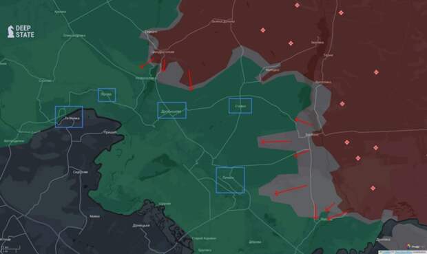 t.me/xykrm На Краснолиманском направлении тяжёлые бои в районе Новосёловки, Яровой и Дробышево. ВС РФ приступили к штурму Ставков и закрепились в северной части этого села. Со стороны Заречного есть продвижение в сторону с. Масляковка, у восточной окраины Красного Лимана.