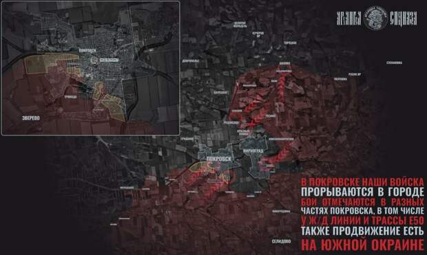 t.me/rusich_army На Покровском направлении МО РФ сообщило об освобождении Молодецкого. Идут упорнейшие бои за шахтоуправление севернее Удачного. ВС РФ стараются отрезать эту промзону от дороги на Сергеевку. Наши войска продолжают дробить оборону ВСУ в Покровске на сектора. С мест сообщают об освобождении с. Проминь. На восточных и северных окраинах Мирнограда кипят бои. На северном охвате – упорное сражение за Родинское, где ВС РФ взяли под контроль большую часть квартала многоэтажек. В Шахово после нескольких дней бомбардировок этого посёлка сопротивление противника практически сломлено. Упорные бои идут в районе Нового Донбасса, Никаноровки, Нового Шахова и Дорожного.