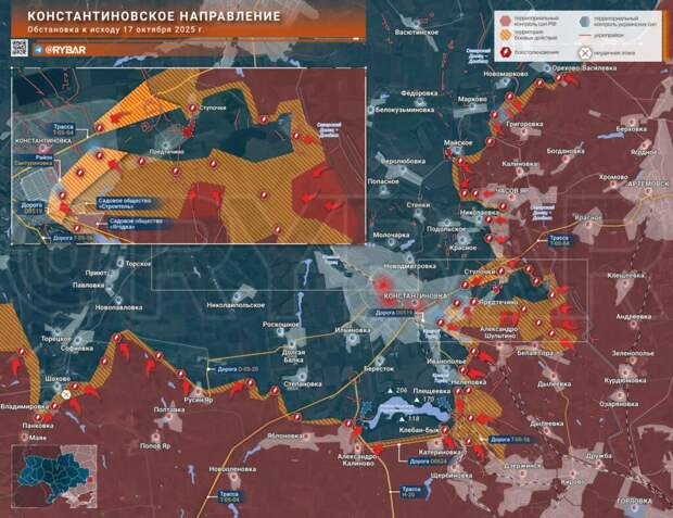 t.me/rybar На Константиновском участке тяжёлые бои в районе Плещеевки и севернее Александро-Шультино. Наши ДРГ проводят разведку боем на юго-восточной окраине Константиновки, но закрепления пока не происходит.