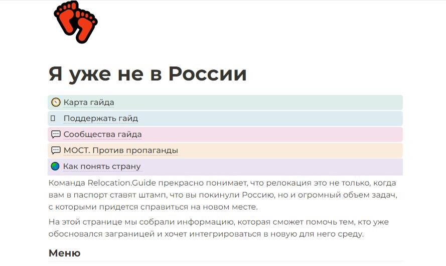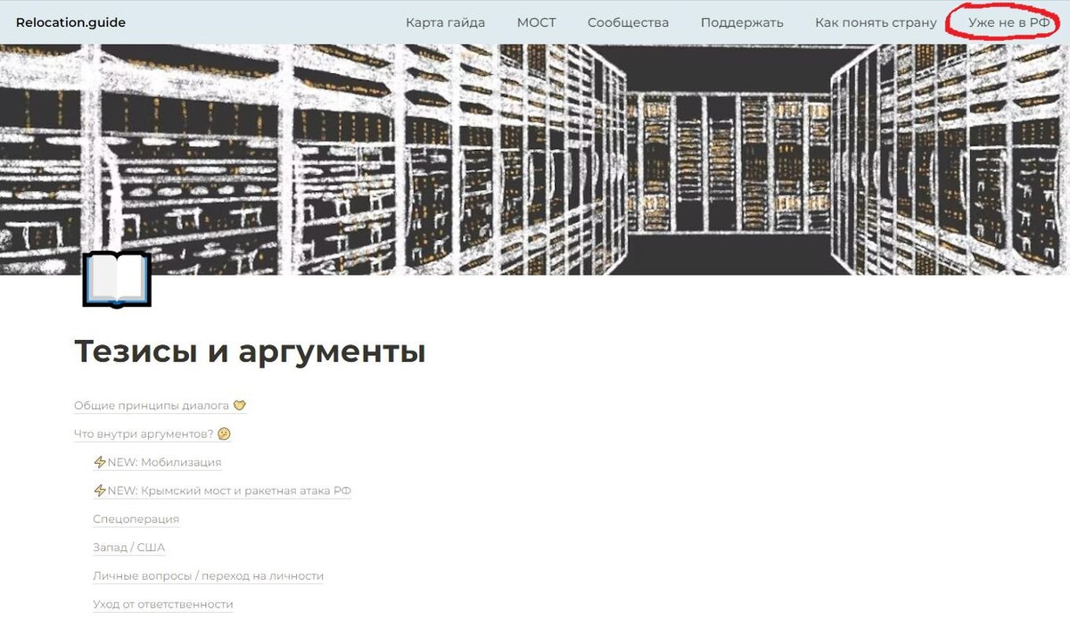 Последняя строка в меню на главной странице сайта посвящена как раз тем, кто «Уже не в РФ».