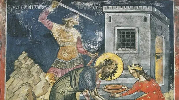 Святого Иоанна Крестителя, который предсказал пришествие Мессии и крестил Иисуса Христа в реке Иордан, заключили в темницу по приказу царя Ирода Антипы. Ирод в то время правил в Галилее, и великий пророк обличал грехи и злодеяния его и его окружения. Тетрарх (то есть один из четырех римских правителей Иудеи) боялся казнить святого: его любил народ, и Ирод страшился народного гнева. Но жена его брата Иродиада, с которой он сожительствовал, подговорила свою дочь Саломею обманом заставить царя убить узника. На пиру Саломея танцевала для Ирода. Танец так понравился ему, что он поклялся исполнить любое ее желание. Саломея попросила голову Иоанна на блюде. Ирод исполнил просьбу. Так пророк принял мученическую смерть.