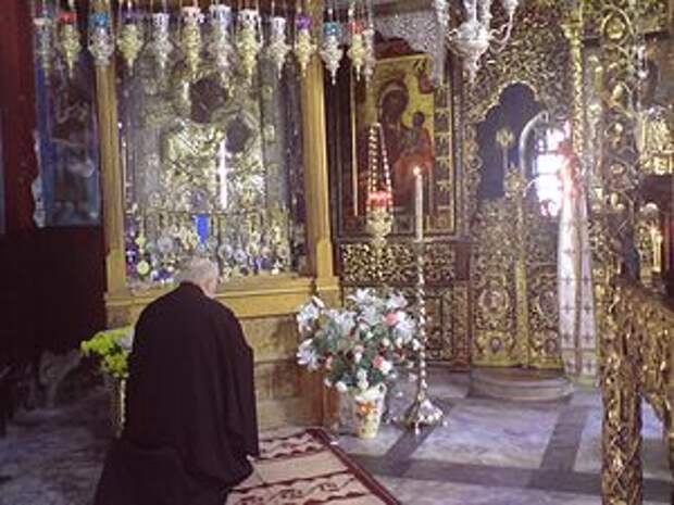 Велико было раскаяние иноков. С тех пор на Святой Горе строго соблюдают обет безмездного странноприимства. А на месте явления Божией Матери был выстроен небольшой храм.