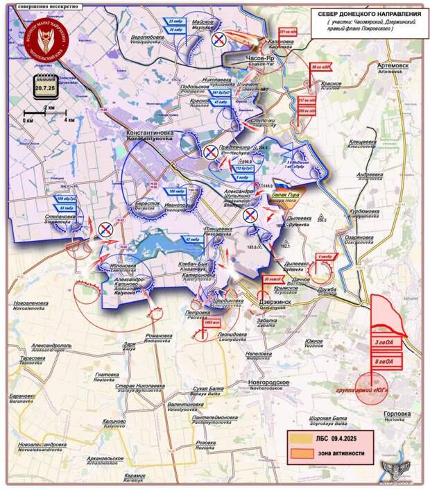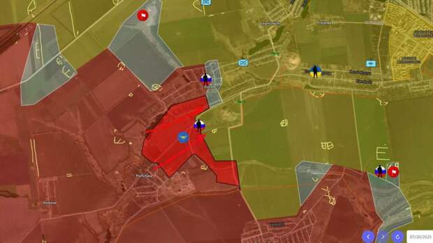 На Константиновском направлении ВС РФ выбили врага из Яблоновки и ведут бои в центре соседнего Александро-Калиново, откуда вынуждены были отойти в июне. Наши пробиваются к западному берегу Клебан-Быкского водохранилища, чтобы перерезать еще один путь снабжения ВСУ. Тогда останется один маршрут, но и он уже под огневым контролем. На восточном фланге МО заявило об освобождении Белой Горы. С мест уточняют, что еще идет зачистка северо-западной части села, ВСУ остаются на окраинах, ближе к Алексанро-Шультино. Выше по фронту, в районе Предтечино, ВС РФ стараются выбить ВСУ из района прудов на западных окраинах села, а также с позиций над ним. Небо кишит БПЛА ВСУ. Западнее Григоровки ВС РФ наступают в направлении Майское и Марково.