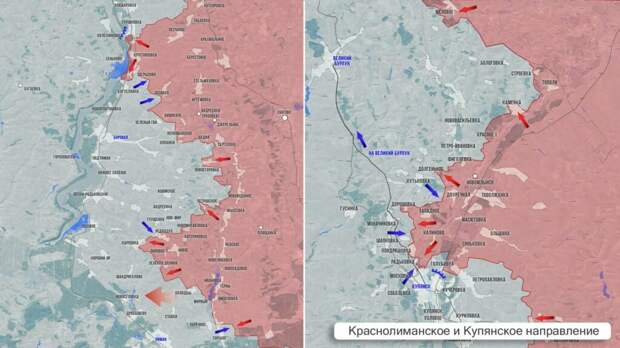 На Купянском направлении идут бои в районе Голубовки и Радьковки. Местные жители сообщают, что ВСУ закрыли Купянск на въезд и выезд блокпостами. Выше по фронту, в районе Тополей, наши чуть продвинулись в направлении Двуреченского.
