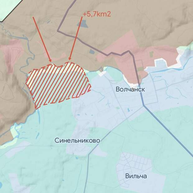 Продвижение РФ украинской стороной фиксируется как в самом Волчанске, так и в районах Волчанских Хуторов, Старицы и н.п. Дегтярное. РФ в этих районах, судя по радиоперехватам ВСУ, старается замкнуть зону огневого контроля между Волчанском и Купянском, уменьшая оперативный карман и выравнивая линию соприкосновения. Параллельно зона огневого контроля насыщается как дронами, так и дальнобойными средствами поражения вроде «Краснополей», хорошо показавших себя ещё в первый заход под Волчанск, когда ВСУ начали перебрасывать резервы.