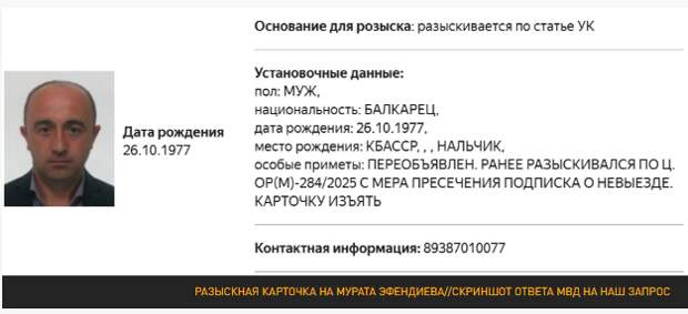 С марта 2025 года Эфендиев в федеральном и международном розыске, он предположительно сбежал в Турцию.